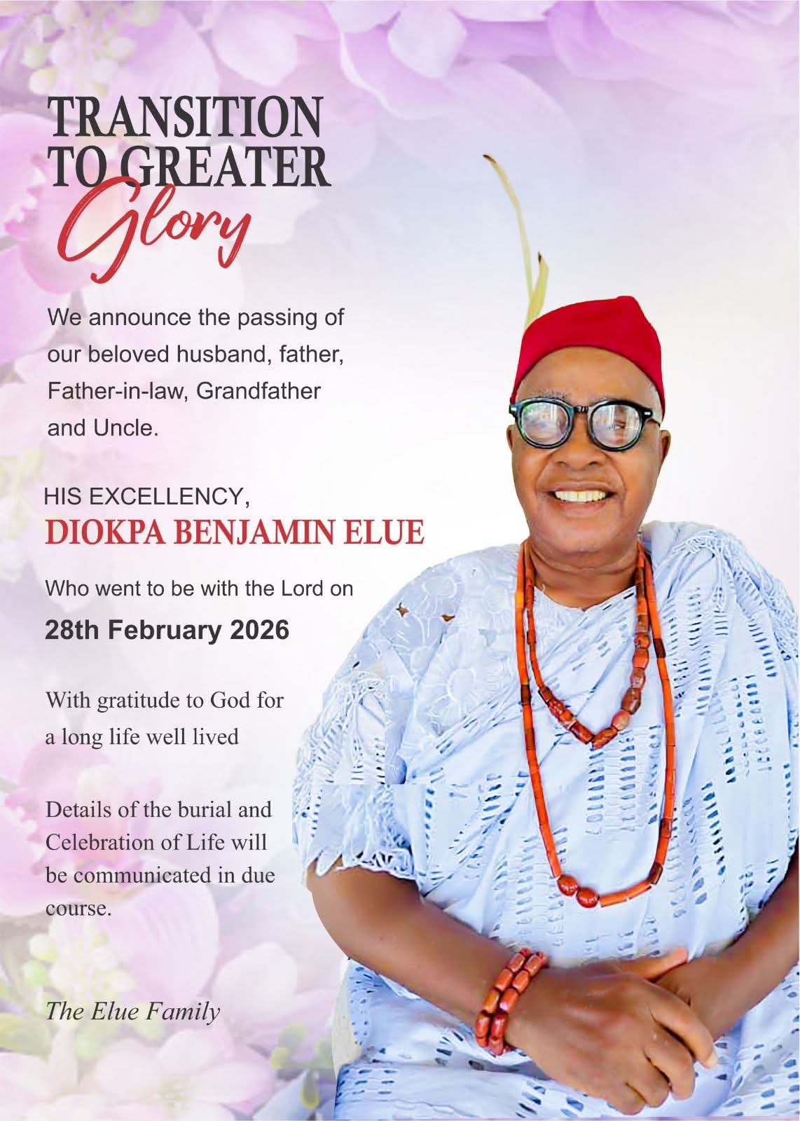 Dr. Osuoza further urged that, in this difficult moment, the family and loved ones find solace in the remarkable legacy Chief Elue leaves behind, a legacy of service, honour, and impactful leadership.