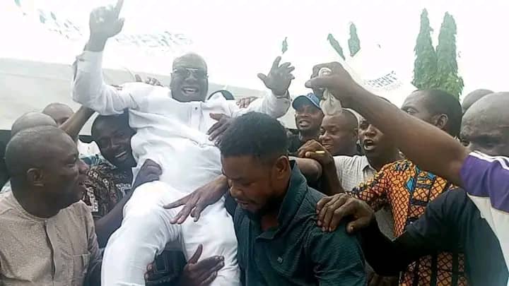 Supporters poured into the venue immediately after the announcement, hoisting Ukalikpe aloft in scenes that reflected both jubilation and defiance, as chants and victory songs rang out.